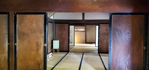 [上の写真は、日野本陣の土間から撮ったものです。一番手前が出務室で、