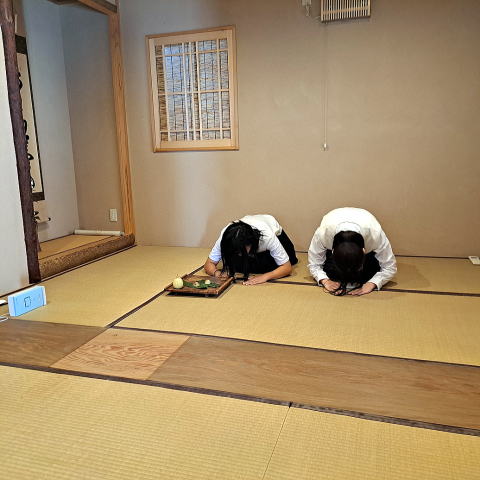 上の写真の部屋でお茶を提供します。社中が座っている畳が珍しくて撮りました。
